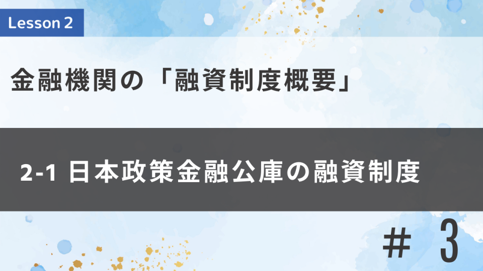 「1-1 日本政策金融公庫と民間の金融機関」では、公的機関である日本政策金融公庫と民間の金融機関のそれぞれの成り立ち、役割や違いについて解説いたします。 民間の金融機関の区分や信用保証協会との関係にも触れ、民間の金融機関における融資の構造についても把握を行います。 動画の内容 0:01:14 日本政策金融公庫の成り立ち 0:03:35 日本政策金融公庫役割と使命 0:07:42 日本政策金融公庫の特徴と今後の取り組み 0:12:48 民間金融機関の区分と特徴 0:16:5…