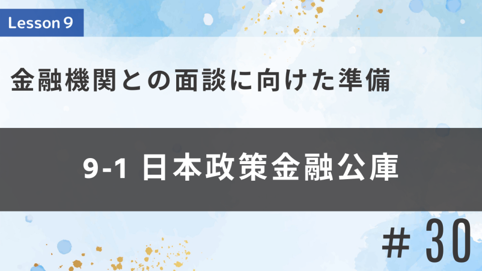 「9-1 面談対策のポイント 日本政策公庫」では、日本政策金融公庫での面談に向けてどのような準備を行えばいいのかについて解説します。 面談の流れや、創業計画書・事業概要書でよく質問いただく項目、NGワードについても合わせて説明します。 動画の内容 0:00:45 日本政策金融公庫の面談の位置づけ 0:04:15 日本政策金融公庫の面談の流れ 0:09:34 日本政策金融公庫の面談に向けて準備しておくポイント