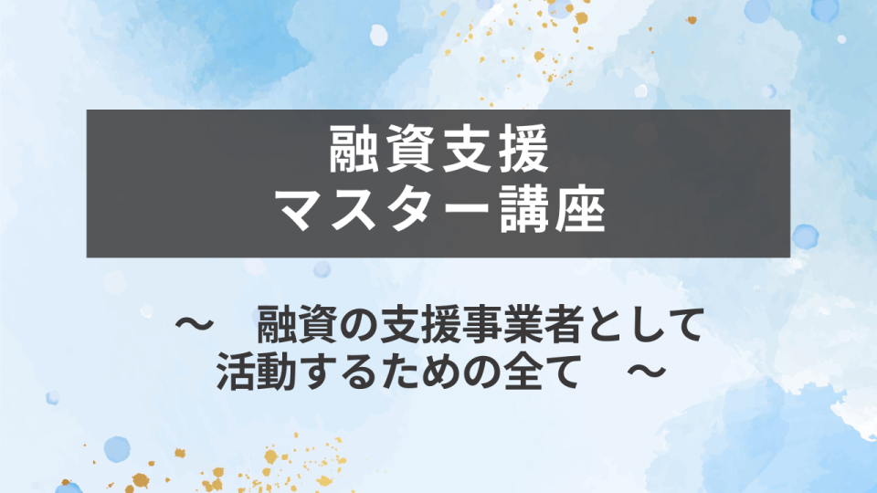本講座は、融資についての事業主から相談を受ける支援機関(主に士業の方向け)の講座となっております。