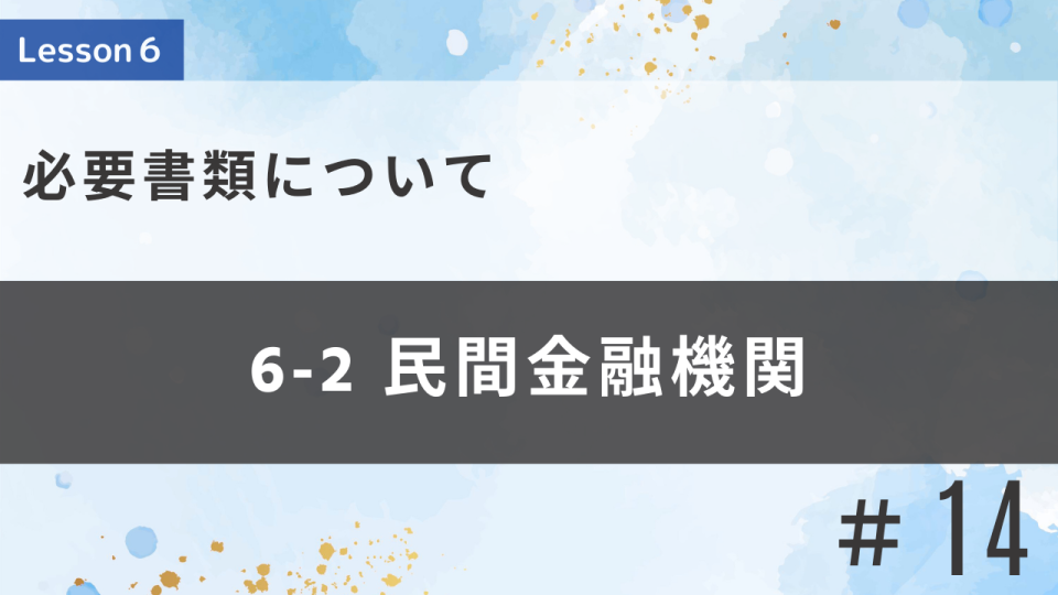 「6-2 民間金融機関」では、民間金融機関から求められる資料を法人、個人事業それぞれで整理しております。 また、求められる資料のうち、保証委託申込書・創業計画書のサンプルを用いて、作成のポイントを解説しております。 動画の内容 0:01:23 法人、個人それぞれで求められる資料 0:09:45 信用保証協会の「保証委託申込書」 0:12:17 信用保証協会の「創業計画書」 0:18:03 プラスaのアピール資料