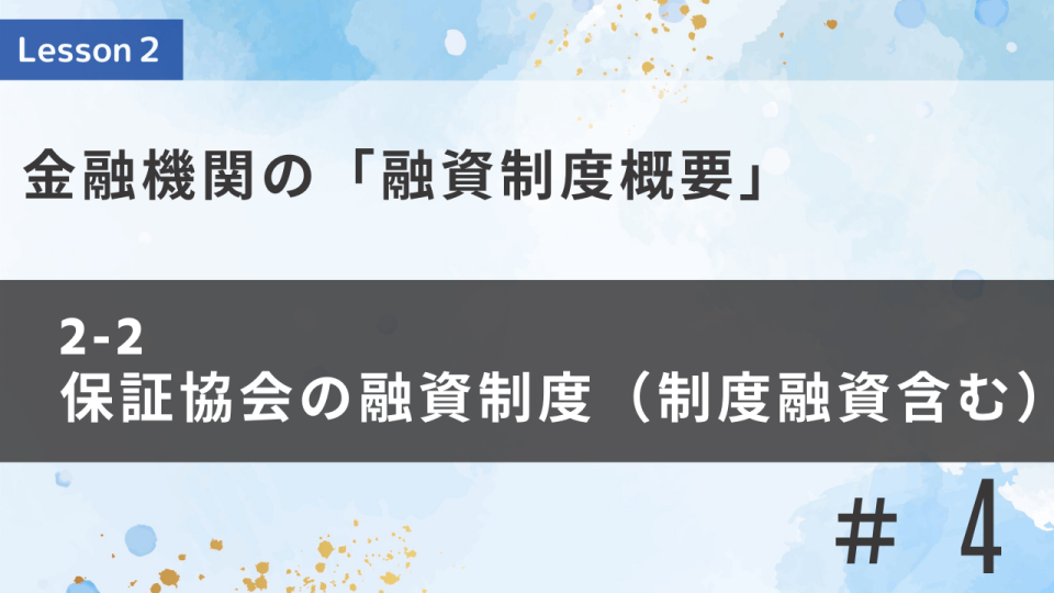 「2-2 保証協会の融資制度」では、民間の金融機関の役割と信用保証協会を利用した融資制度について解説します。 条件や費用、利用した際の融資の流れを整理しております。 また、地方自治体と連携で融資を受けやすくする優位あっせん制度についてもご紹介しています。 動画の内容 0:00:20 事業者の資金調達の手段 0:01:08 民間金融機関の融資の種類:事業資金の場合 0:01:46 信用保証協会とは 0:02:26 信用保証協会を利用できる事業主 0:03:12 信用保証協会の対象外の業種 0:03:52 どのような事業資金が保証対象になるか 0:05:37 保証…