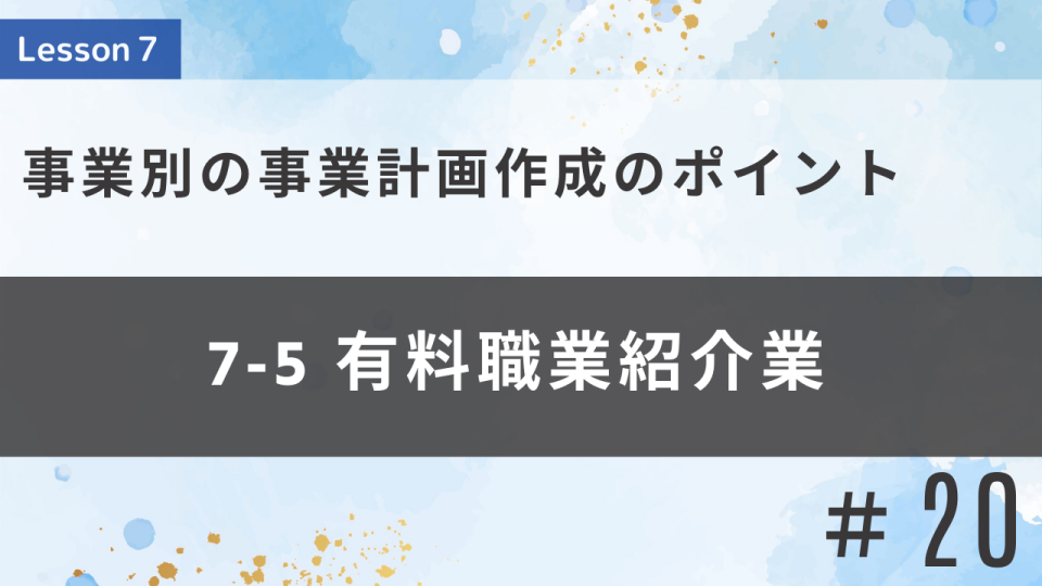 「7-5 事業別の事業計画作成のポイント 有料職業紹介業」では、有料職業紹介業での実例をご紹介します。 有償職業紹介の業界は競争が激しく、既存の借入金額が2,400万円と資金繰りに苦戦されていましたが、民間金融機関から500万、オリックス保証で1,000万が可決しました。 動画の内容 0:00:29 有料職業紹介業~概要~ 0:02:23 実際の収支計画表