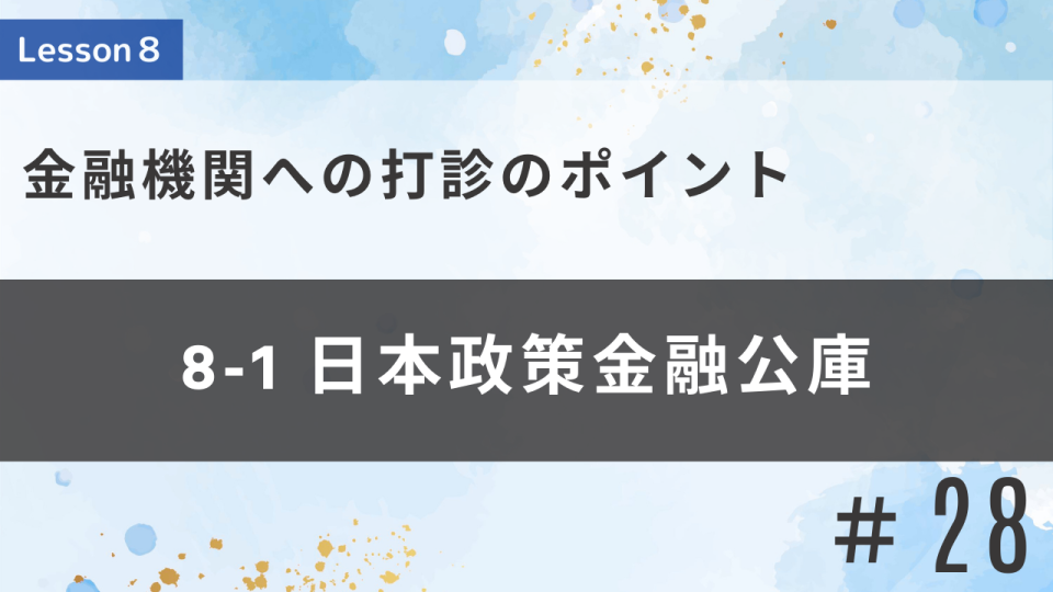 「8-1 金融機関への打診のポイント 日本政策金融公庫」では、日本政策金融公庫の担当者に事前相談を行う際のポイントを解説しております。 効果的に打診をする方法をおさえて、事業者が支援機関を利用するメリットを提示できるようにしましょう。 動画の内容 0:01:08 日本政策金融公庫の打診先の選定 0:05:03 日本政策金融公庫へ打診を行う際の注意点 0:09:00 打診内容について